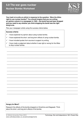 Ks3 History Nuclear Bombs Worksheet Pdf Teaching Resources